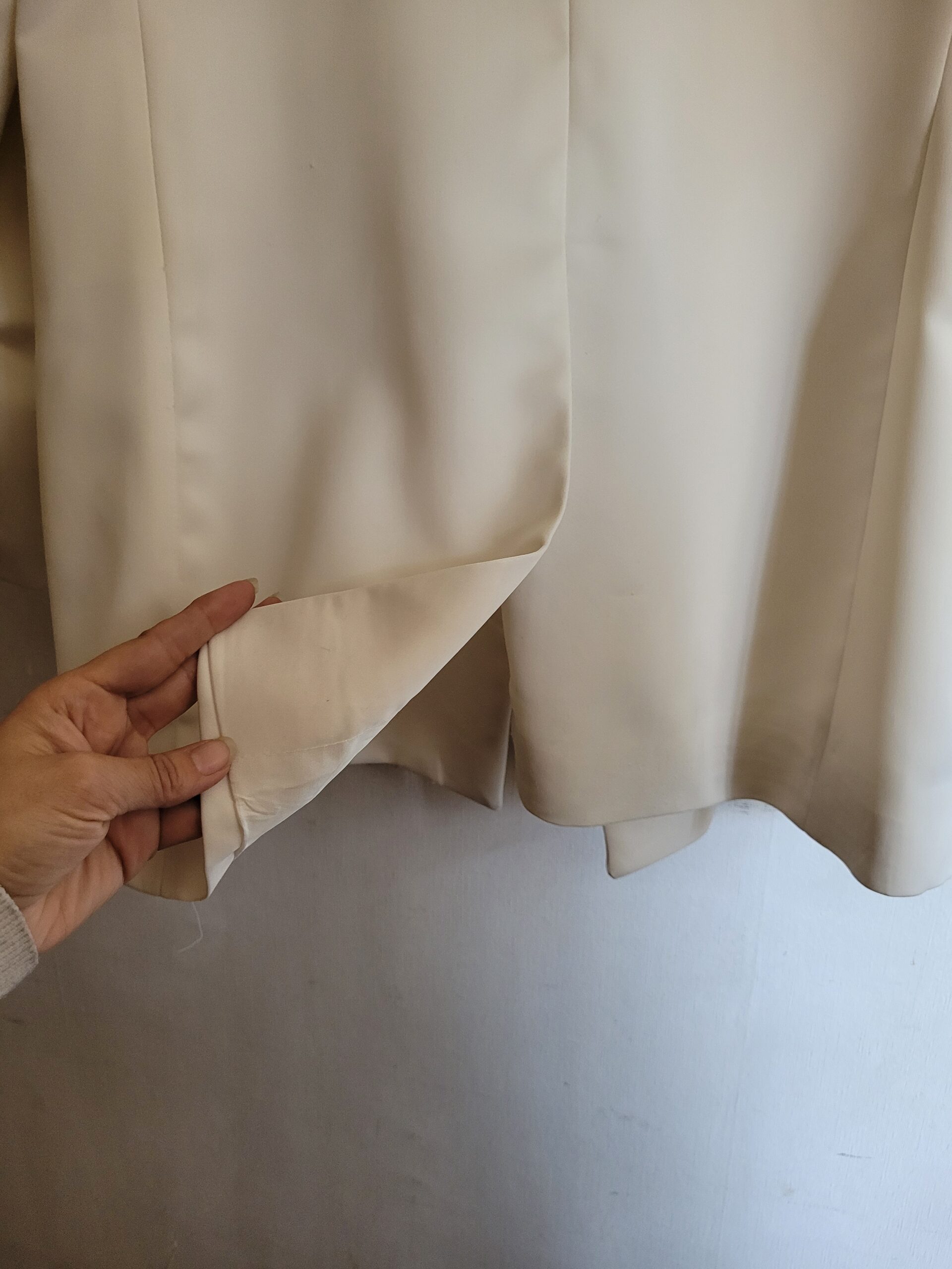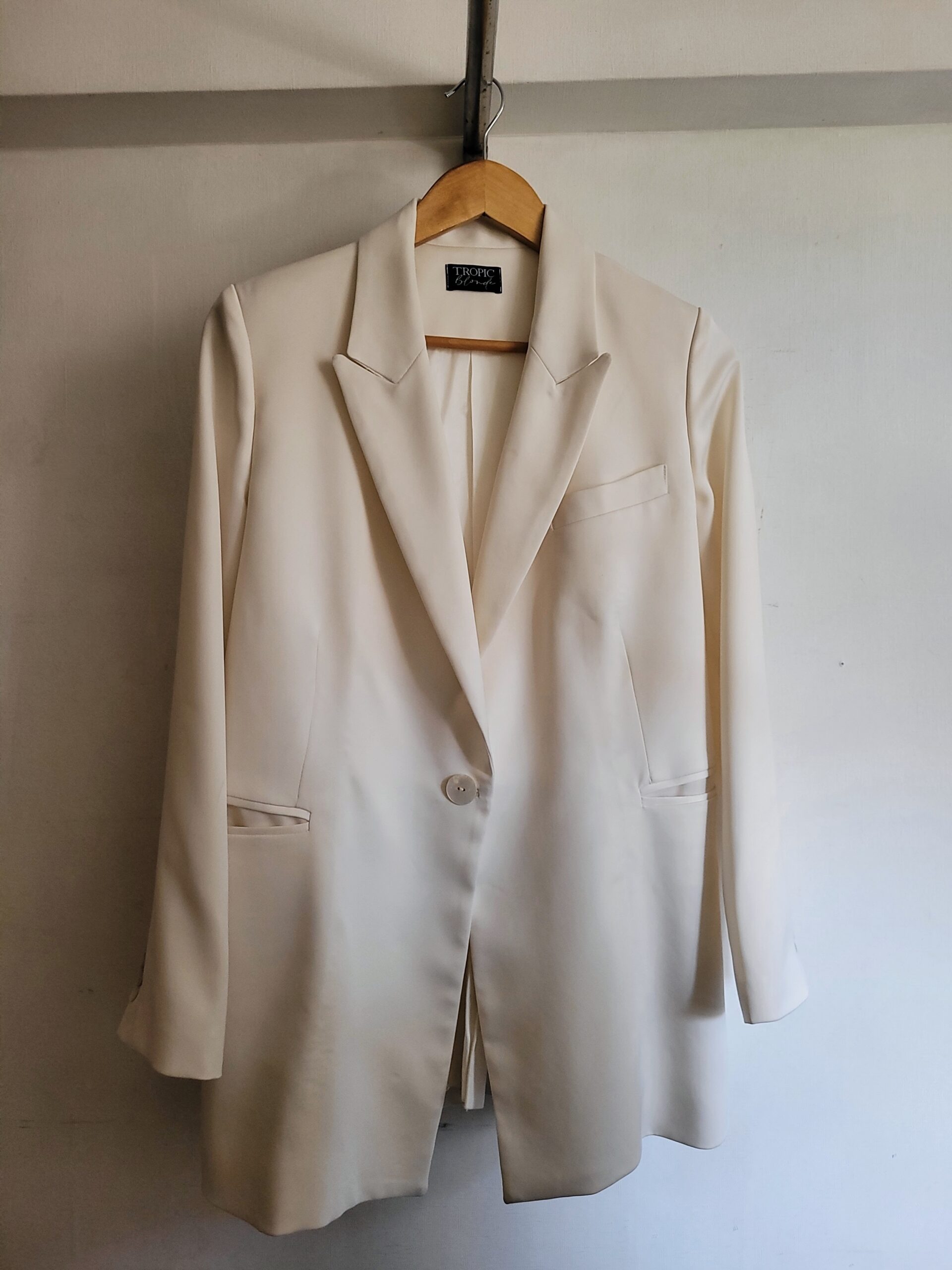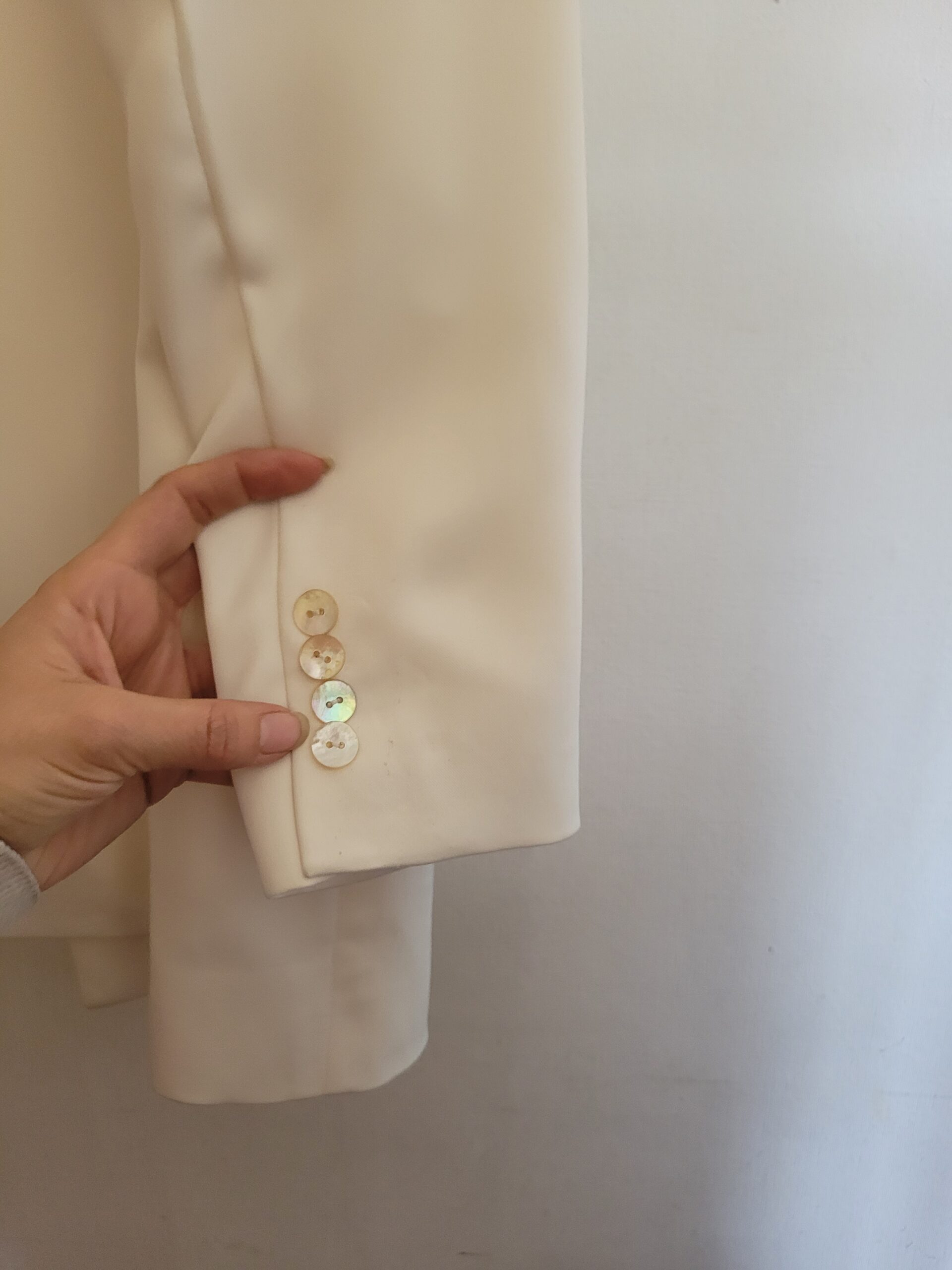 Blazer corte recto , bolsillos delanteros , 1 botón – Estructura limpia, caída fluida y la sutileza de los detalles a mano que destacan el oficio sastre