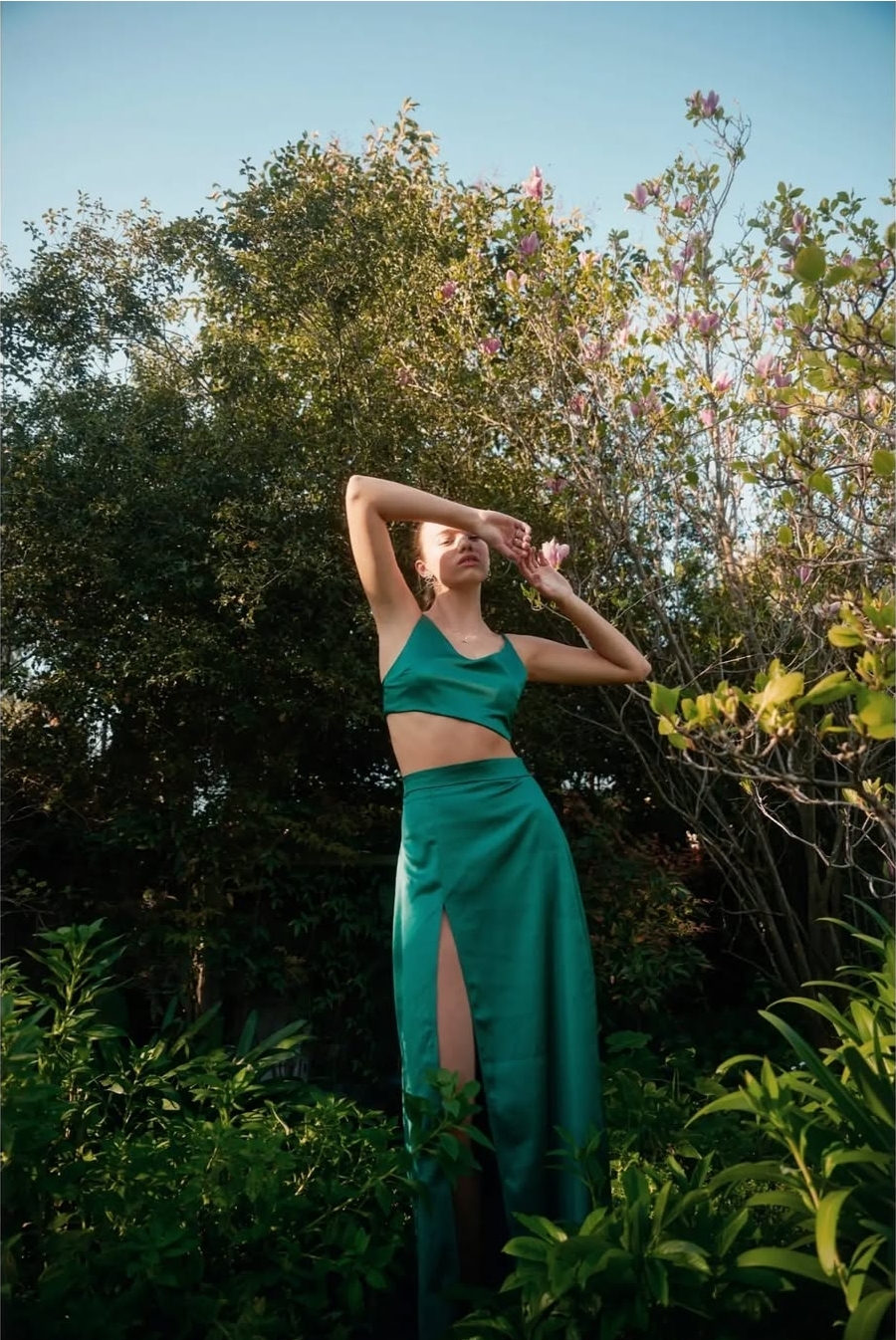 Falda larga satín con abertura frontal – cierre invisible espalda/ Esta falda en satín celebra la silueta con un corte limpio y contemporáneo. Su abertura frontal introduce un gesto audaz y femenino, equilibrando movimiento y sensualidad con naturalidad. Con cintura definida y caída recta, acompaña el cuerpo sin rigidez, destacando el brillo delicado del textil. Una pieza pensada para transitar entre lo cotidiano sofisticado y lo nocturno elegante.